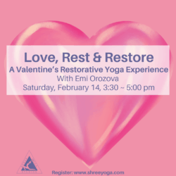 This Valentine’s season, we celebrate love in its most essential form — the love that begins within. Join us for a deeply calming restorative yoga class designed for anyone seeking rest, renewal, and heart-centered connection.